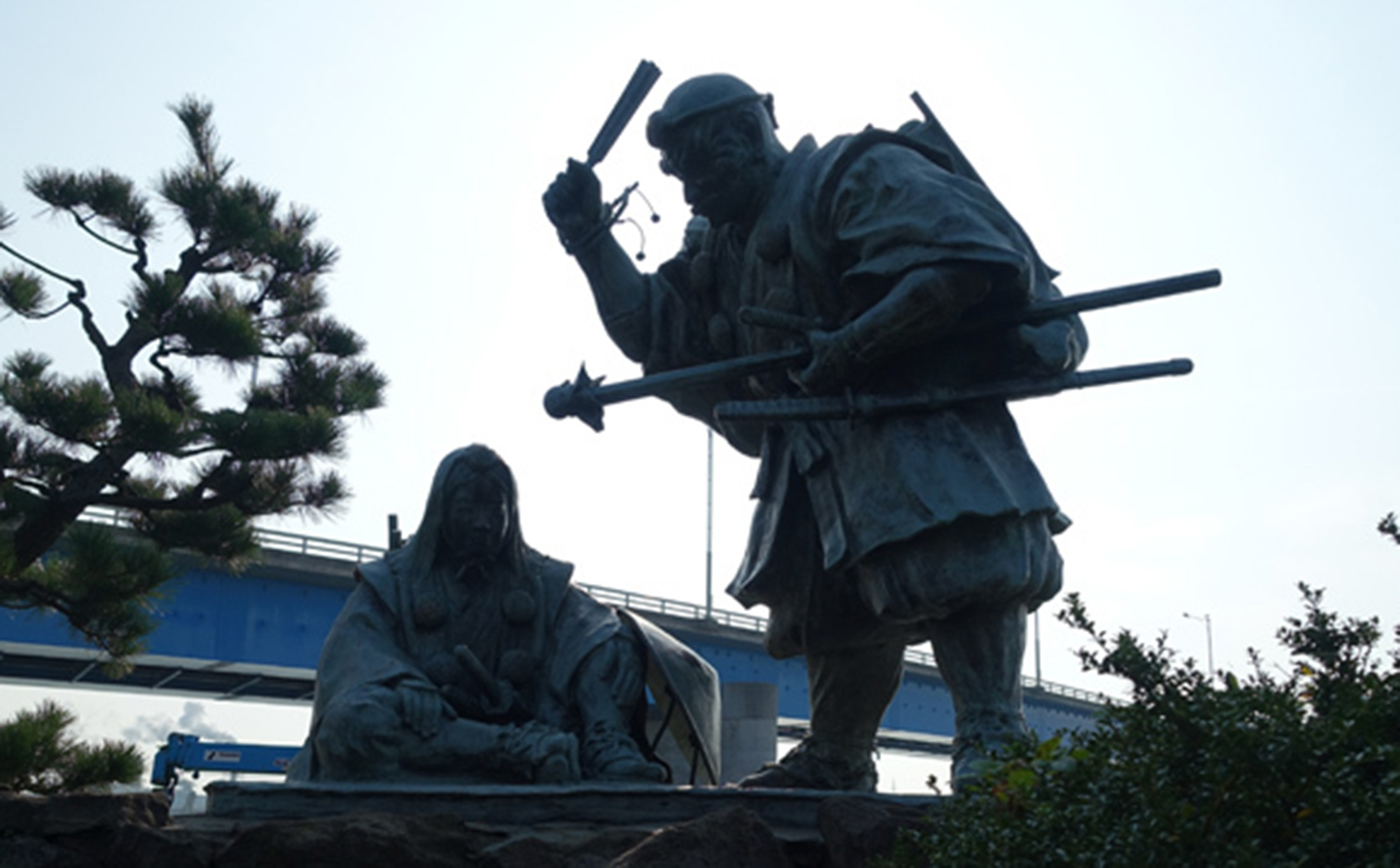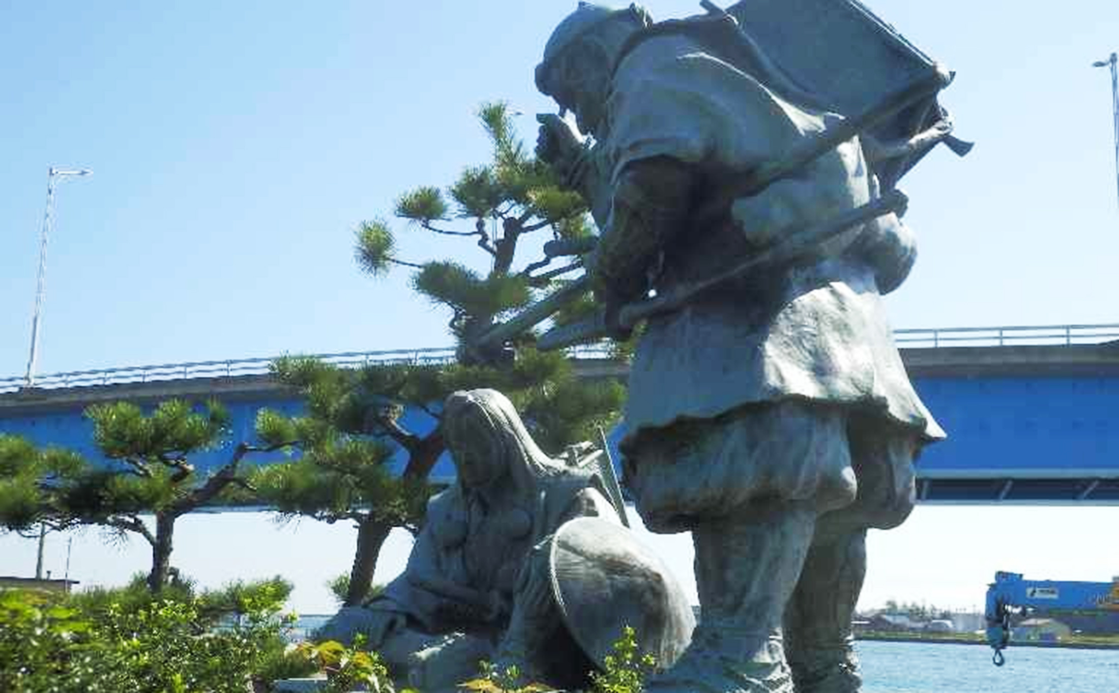 高岡市伏木側の船着き場「如意の渡し」横の公園には、義経と弁慶の銅像が建っています。